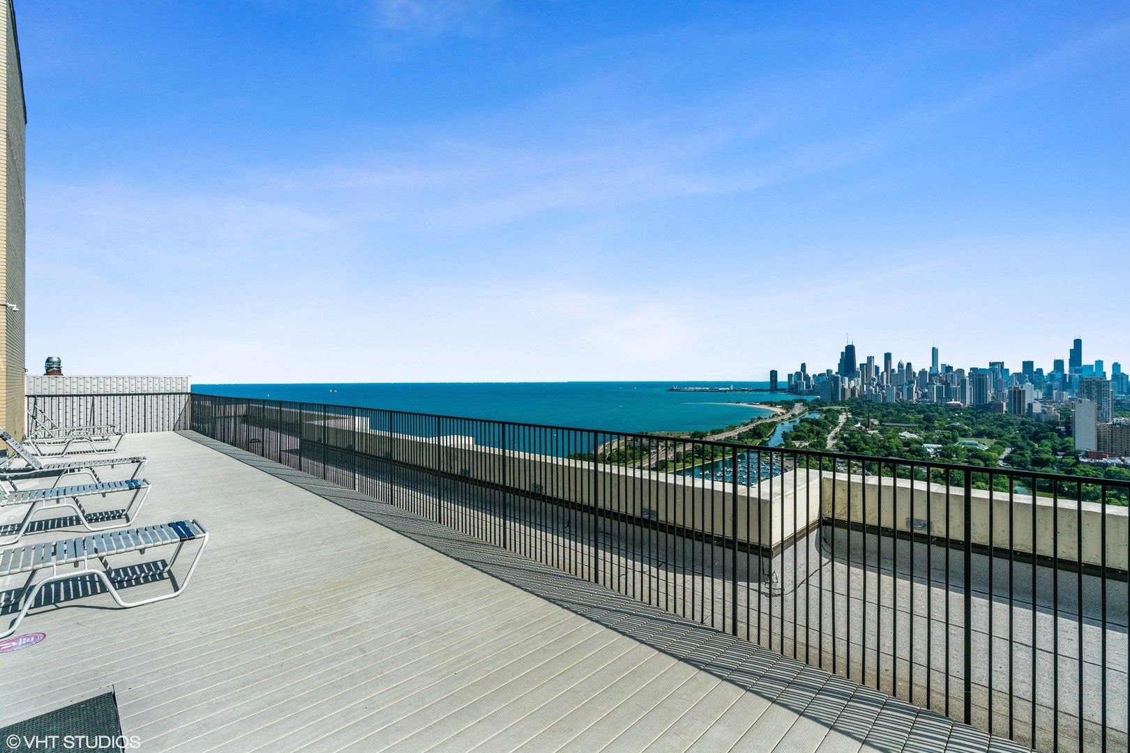 Walk to the Lake, Belmont/Diversey Harbors, Diversey Driving Range/Tennis, Chicago Yacht Club, Lincoln Park Zoo, parks, retail/restaurants and all that East Lakeview has to offer from this large and well proportioned 900sqft 1 bed / 1 bath home with some Lake & Park Views in one of the Premier FULL AMENITY Lake Shore Dr High Rise Buildings featuring Wide (18'+) Living/Dining area w/Picture Windows opening to Oak/Granite/S/S Kitchen; Huge Bedroom that can easily fit king set w/abundant closet space, and tastefully updated stone bath; Terrific Storage Space throughout w/numerous closets including hallway walk-in; Full Amenity Building w/24 Hr Doorstaff, Pool, Fitness Center, Dry Cleaner/Receiving Room, Bike Room, Roof Deck & Commercial Laundry Rm (IN-UNIT Permitted Subject to Approval); Strong & Proactive Association w/$3.1m (as of 02/27/26) in Reserves & Comprehensive Reserve Study performed in 2022; Assessments include All but electric including cable/internet; Attached Leased Garage Parking Available; Additional Storage included!